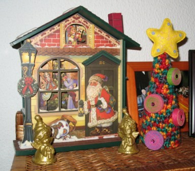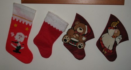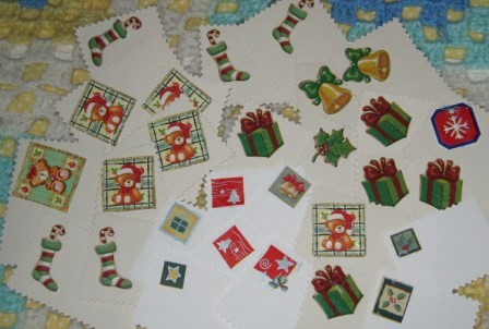 Usou os cartões das capas de folhas e imagens recortadas dos papéis de prenda do Natal anterior.