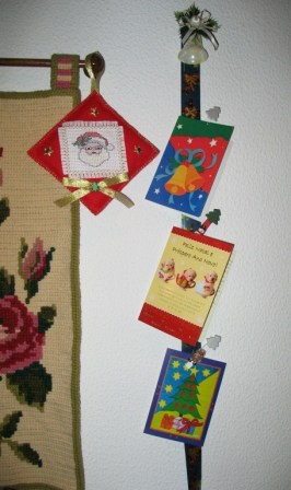 A Ana fez os cartões para marcarmos as lembranças de Natal.